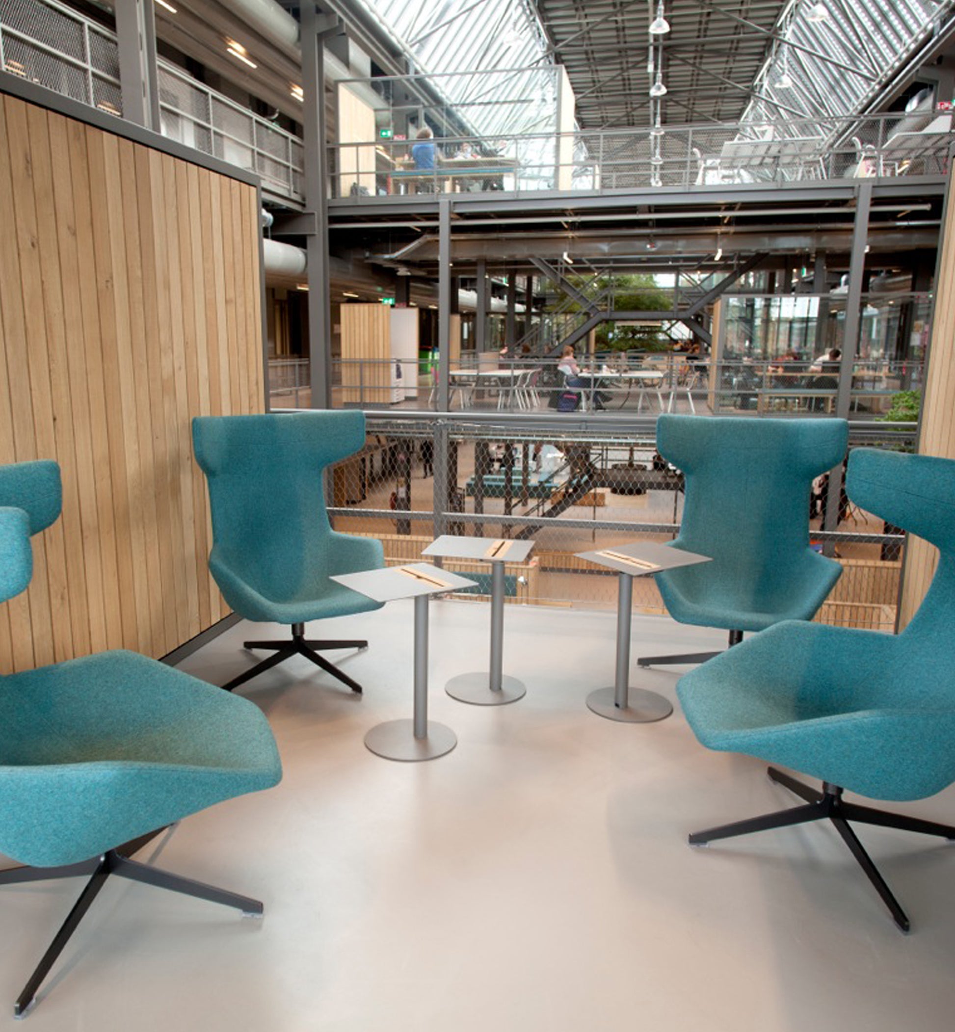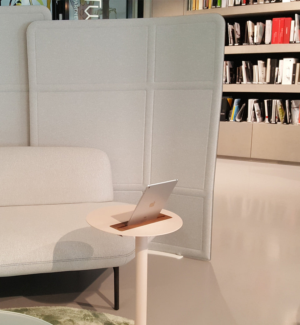 Living and working environments become more dynamic, where relaxing and working spaces overlap the Nomad tablet table takes place.