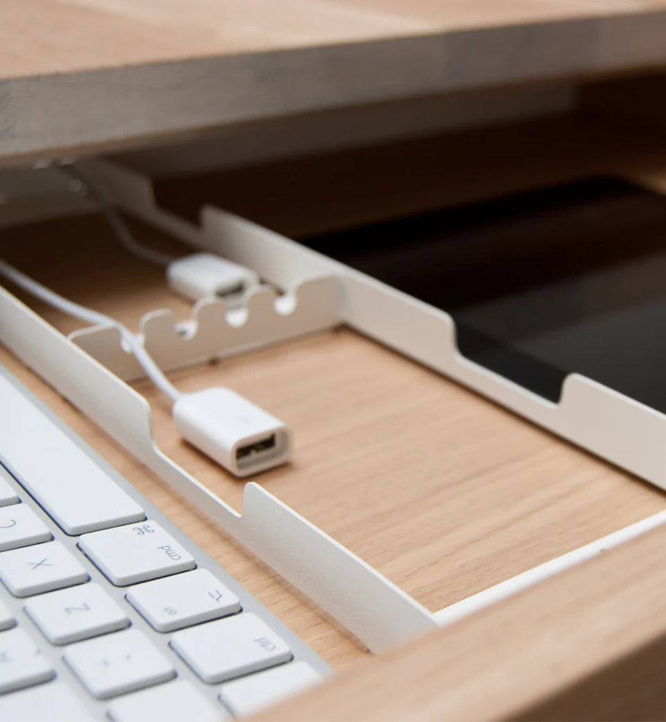 The Shift Table helps you keep unattractive cables out of sight while your devices can stay within reach, safely and effortlessly recharging in their own hidden place.