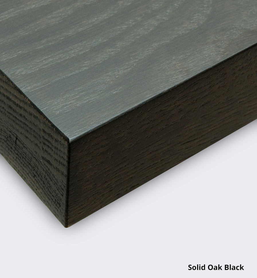 Solid oak, optional stained colours and finished in satin matt lacquer.